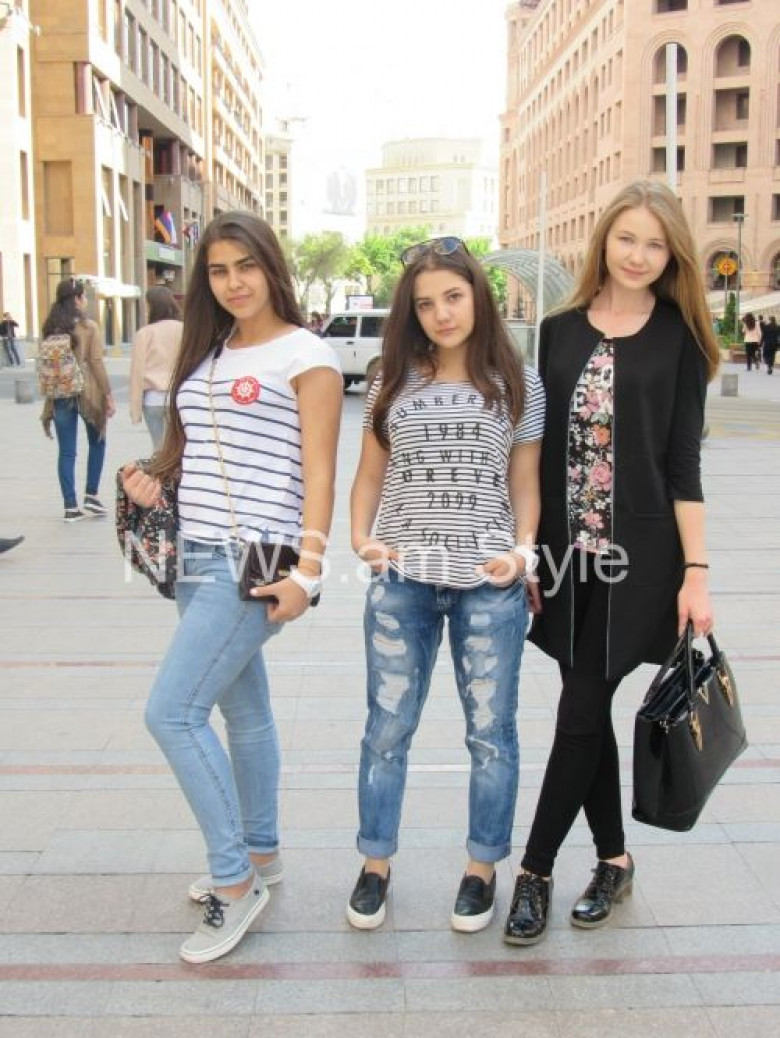 Երեւանում զբոսնող աղջիկները այս սեզոնին աչքի են ընկնում իրենց պայծառ հագուստներով: Մեր զբոսանքի ընթացքում նկատեցինք, որ այժմ բավականին արդիական են ծաղկավոր նախշերով շապիկներն ու վանդակավոր վերնաշապիկները: