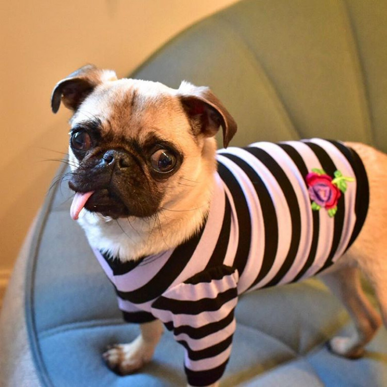 Նյու Յորքից Մեյբլ մականվամբ մոփսը դարձել է Instagram-ի աստղ շնորհիվ իր տիրուհու, որը հրապարակում է շան լուսանկարները տաբեր հագուստներով: Mashable-ի հաղորդմամբ՝ շան օգտահաշվին բաժանորդագրված է ավելի քան 1400 օգտատեր: