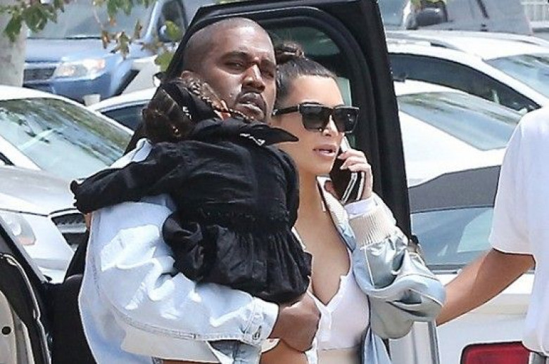Ким Кардашьян и Канье Уэст с дочкой Норт