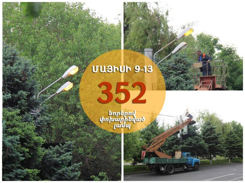 ՀասարակությունՄայրաքաղաքի արտաքին լուսավորության համակարգի անխափան աշխատանքն ապահովելու նպատակով ամենօրյա աշխատանքներ են իրականացվում: Երևանի քաղաքապետարանի «Երքաղլույս» ՓԲԸ-ից տեղեկացնում են, որ մայիսի 9-13-ն ընկած ժամանակահատվածում նորերով է փոխարինվել փողոցներում, բակերում, վերգետնյա և ստորգետնյա անցումներում, ինչպես նաև այգիներում ու պուրակներում առկա 352 վնասված լամպ: Նախորդ շաբաթվա ընթացքում Երևանի արտաքին լուսավորության ցանցին է միացվել ևս 2 փողոց: