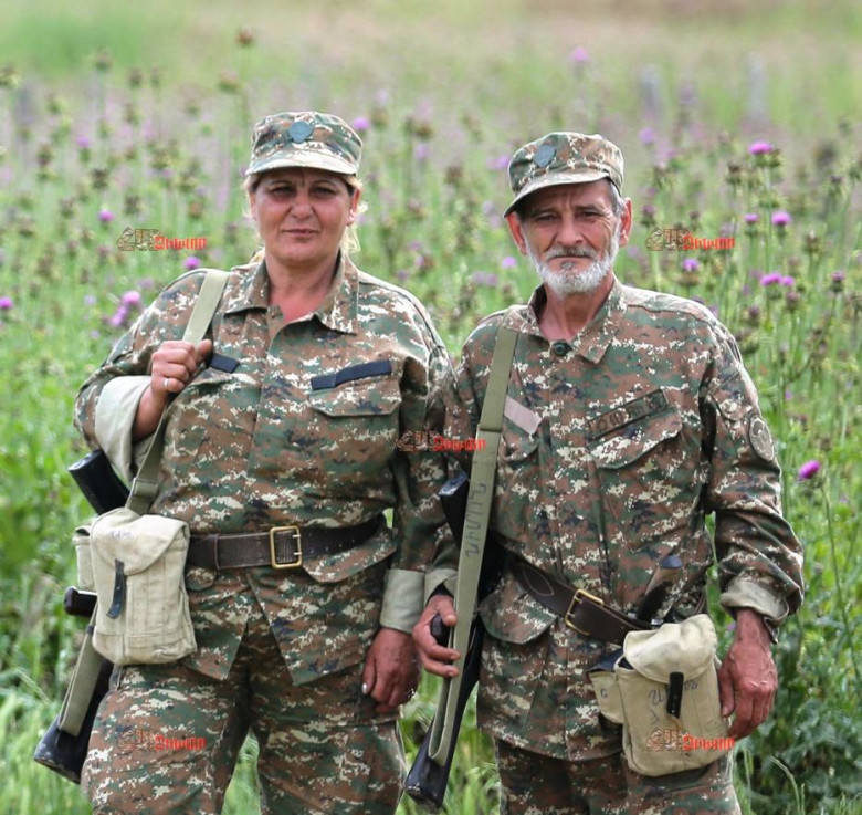 Կանաչ, գրեթե մարդու հասակի խոտերի միջով մոտեցող կանացի դիմագիծ եմ նշմարում. Կարինեն է` Դուշման Համոյի ջոկատի կին-ազատամարտիկը: Ամուսնու` Սիմոնի հետ է այստեղ: «Երեւի խանդում է, դրա համար էլ մենակ չի թողել»,- շշնջում է կողքիս կանգնած կամավորականը: Ընդառաջ եմ գնում, բարեւում: Կարինեն հարցիս չի սպասում, ասում է. «Ես այսօր բոլորի մայրն եմ, մորաքույրն եմ: Իմ զինվորին, իմ երեխային մենակ չէի կարող թողնել: Շուտով տղայիս վերջին զանգն է, կգնանք ու ետ կգանք: Ինչքան պետք լինի, կմնանք»: