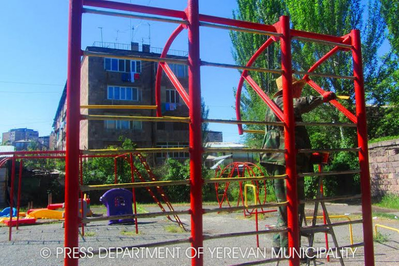 Ներկվում և գունազարդվում են Երևանի բակերում տեղադրված մանկական խաղերը