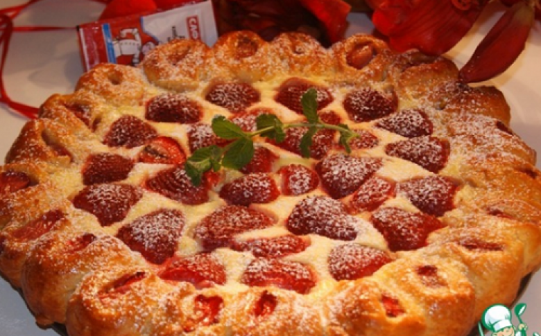 Խմորի տրամագծով շարել ելակները, ծածկել ծայրերից, հավասարաչափ կտրվածքներ անել ու փրջել, որ ելակները երևան։