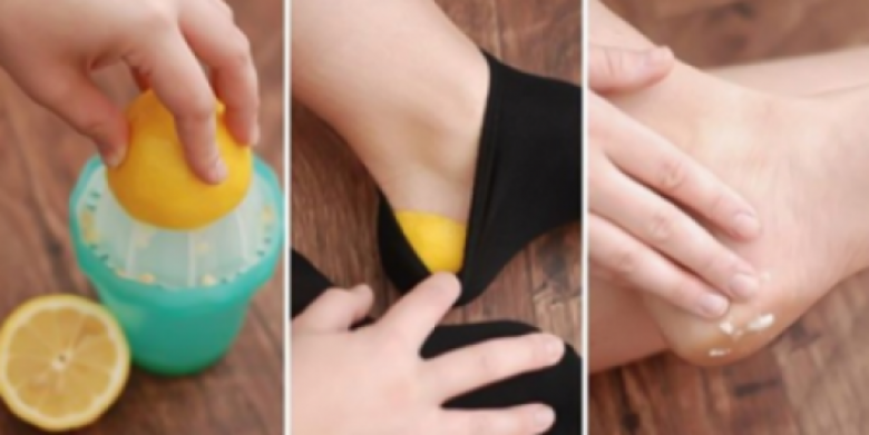 2. Կիտրոնը դրեք ճաքճքված հատվածին, վրայից հագեք գուլպաներ և թողեք մնա 30 րոպե: Արդյունքը կհիացնի ձեզ: