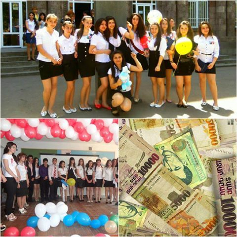 Ճիշտ է, դրամահավաքներն արգելված են, բայց դասարանի ծնողական խորհուրդը ներքինկարգով բոլոր դպրոցներում ուսուցիչների, դասղեկի և տնօրենի նվերների և ծաղկեփնջիհամար գումար է հավաքում: Այդ գումարը տատանվում է 10.000 -20.000 դրամիսահմաններում: Չնայած ծանոթներիցս իմացա, որ կան ծայրահեղ դեպքեր, երբ դպրոցնավարտելու առթիվ տնօրենին ոսկե շղթա են գնում, դա, իհարկե, ավելի մեծ գումարներիհետ է կապված: