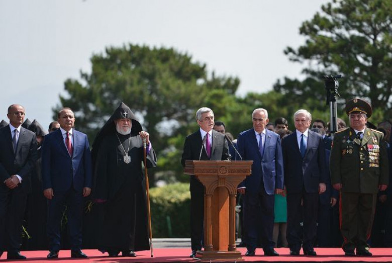 ՀասարակությունՆախագահ Սերժ Սարգսյանը մայիսի 28-ին Սարդարապատի հերոսամարտի հուշահամալիրում Ն.Ս.Օ.Տ.Տ. Գարեգին Բ Ամենայն Հայոց Կաթողիկոսի, ՀՀ բարձրագույն ղեկավարության և հուշահամալիր այցելած հյուրերի հետ մասնակցել է Հանրապետության տոնին նվիրված հանդիսավոր միջոցառմանը: