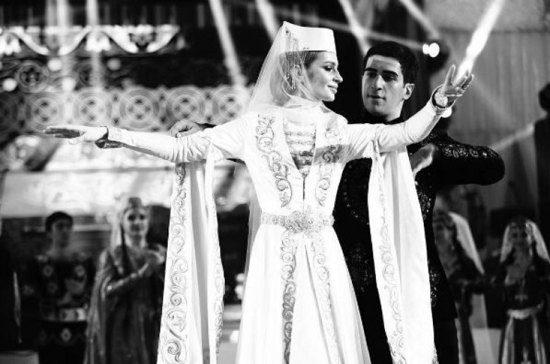 Խնջույքի ժամանակ հարսը` 25-ամյա վրացուհի Սալոմե Կինցուրաշվիլին, 3 անգամ զգեստափոխվել է`500-ից ավելի հյուրերի մոտ ներկայանալով Elie Saab և Alessandra Rich կուտյուրային թանկարժեք հանդերձներով, ինչպես նաև՝ ազգային ճերմակ տարազով: