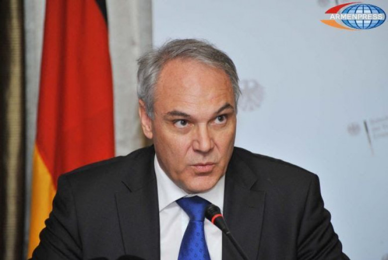 «Հենց տարվա սկզբից ԵԱՀԿ գերմանական նախագահությունը պարբերաբար շեշտում էր, թե որքան կարեւոր է փոխվստահության մթնոլորտի ձեւավորումը շփման գծում, եւ այս հարցի կարեւոր բաղադրիչը ԵԱՀԿ գործող նախագահի անձնական ներկայացուցիչ, դեսպան Անջեյ Կասպրչիկի գրասենյակի ընլայնման աշխատանքներն են: Այն բանից հետո, երբ մայիսի 16-ին ձեռք բերվեց փոխպայմանավորվածություն երկու երկրների միջեւ, գերմանական ԵԱՀԿ նախագահությունը իր ջանքերն է ուղղում այս միջոցառումների համար նախատեսվող բյուջեի ձեւավորման համար: Մենք հուսով ենք, որ բյուջե ն կսահմանվի ԵԱՀԿ բոլոր անդամների երկրների կողմից: Թեպետ պայմանավորվածությունից հետո շփման գծում արտառոց դեպքեր տեղի չեն ունեցել, եւ տիրում է հարաբերական անդորր, բայց իրականում 1994 թվականին կնքված հրադադարի համաձայնագիրը պետք է կայուն մնա, եւ միաժամանակ, առանց հետաձգելու պետք է վերսկսվեն քաղաքական բանակցությունները խնդրի կարգավորման շուրջ»,- ընդգծեց Գերմանիայի դեսպանը: