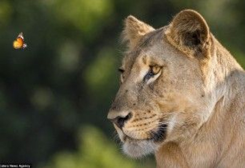 Ինչպես նշում է The Daily Mail-ը, լուսանկարչի ամենատես աչքից չի վրիպել գեղեցկուհի թիթեռի ու գիշատչի՝ էգ առյուծի պատահական «հանդիպումը»: