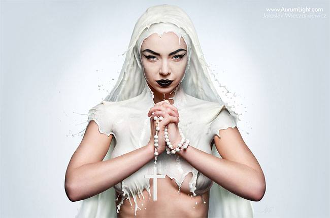 Գործընթացը շատ պարզ է. վերցնում ենք տեսախցիկ, նկարում մերկ կանանց, նկարները մշակում ֆոտոշոփով և նկարում կաթից զգեստ:
