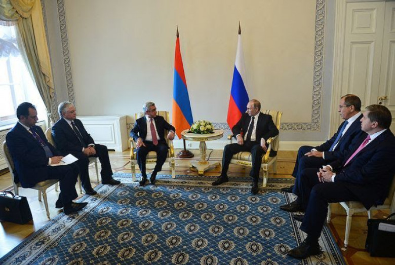 ՔաղաքականՍանկտ Պետերբուրգի Կոնստանտինովյան պալատում հունիսի 20-ին կայացել է ՀՀ Նախագահ Սերժ Սարգսյանի և ՌԴ Նախագահ Վլադիմիր Պուտինի հանդիպումը: Ռազմավարական գործընկեր երկու երկրների նախագահները քննարկել են ԼՂ հակամարտության կարգավորման բանակցային գործընթացին վերաբերող հարցեր, այդ համատեքստում անդրադարձել տարածաշրջանի զարգացումներին և անվտանգությանն սպառնացող ներկայիս մարտահրավերներին: