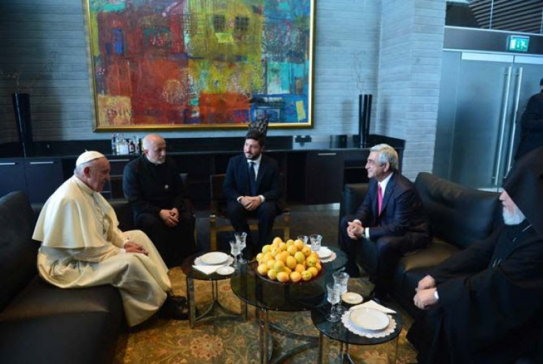 «Զվարթնոց» օդանավակայանում ՀՀ Նախագահը, Ամենայն Հայոց Կաթողիկոսը կարճատև զրույց են ունեցել Հռոմի պապի հետ