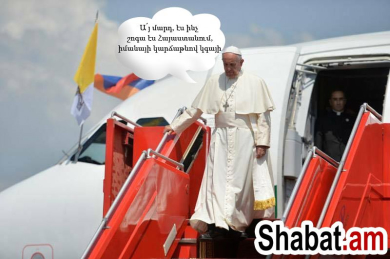 Ներկայացնում ենք Սրբազան քահանայապետ Ֆրանցիսկոս պապի այցը Հայաստան՝ զվարճալի լուսանկարներով: Ֆոտոշարքը չունի քաղաքական ենթատեքստ, ցանկալի է վերաբերվել հումորով: