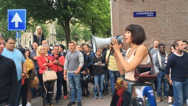 Իր հանդեպ նկարչուհին ուշադրություն է գրավել բարձրախոսի օգնությամբ: