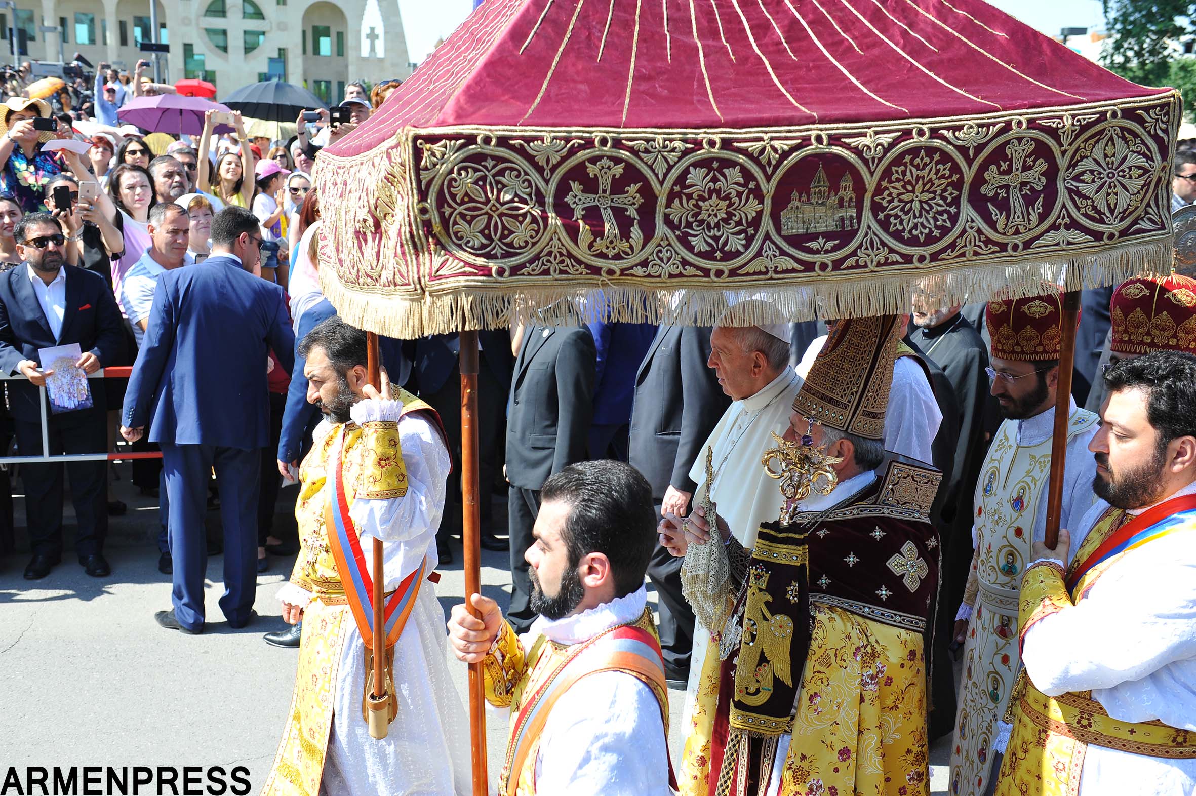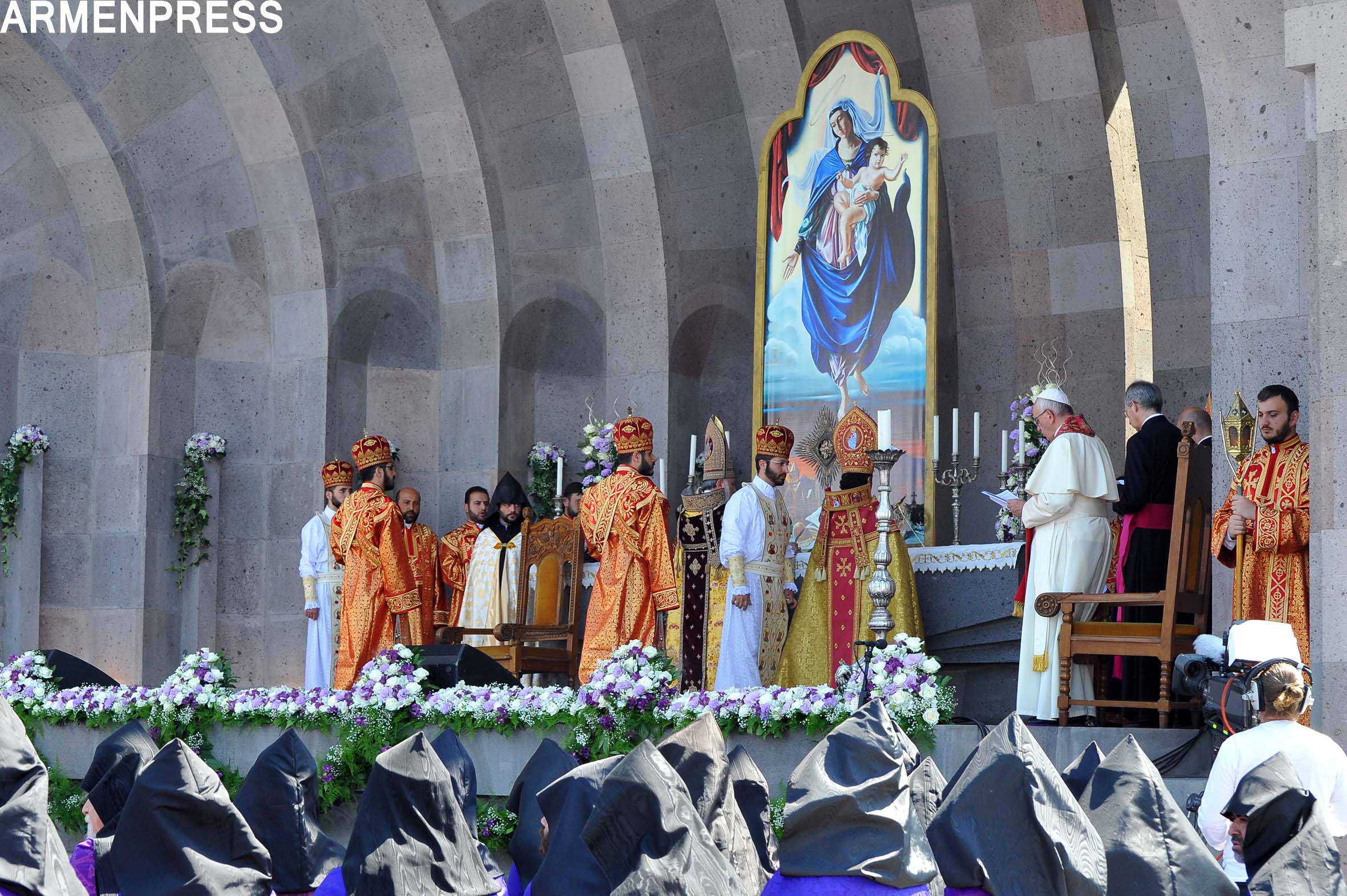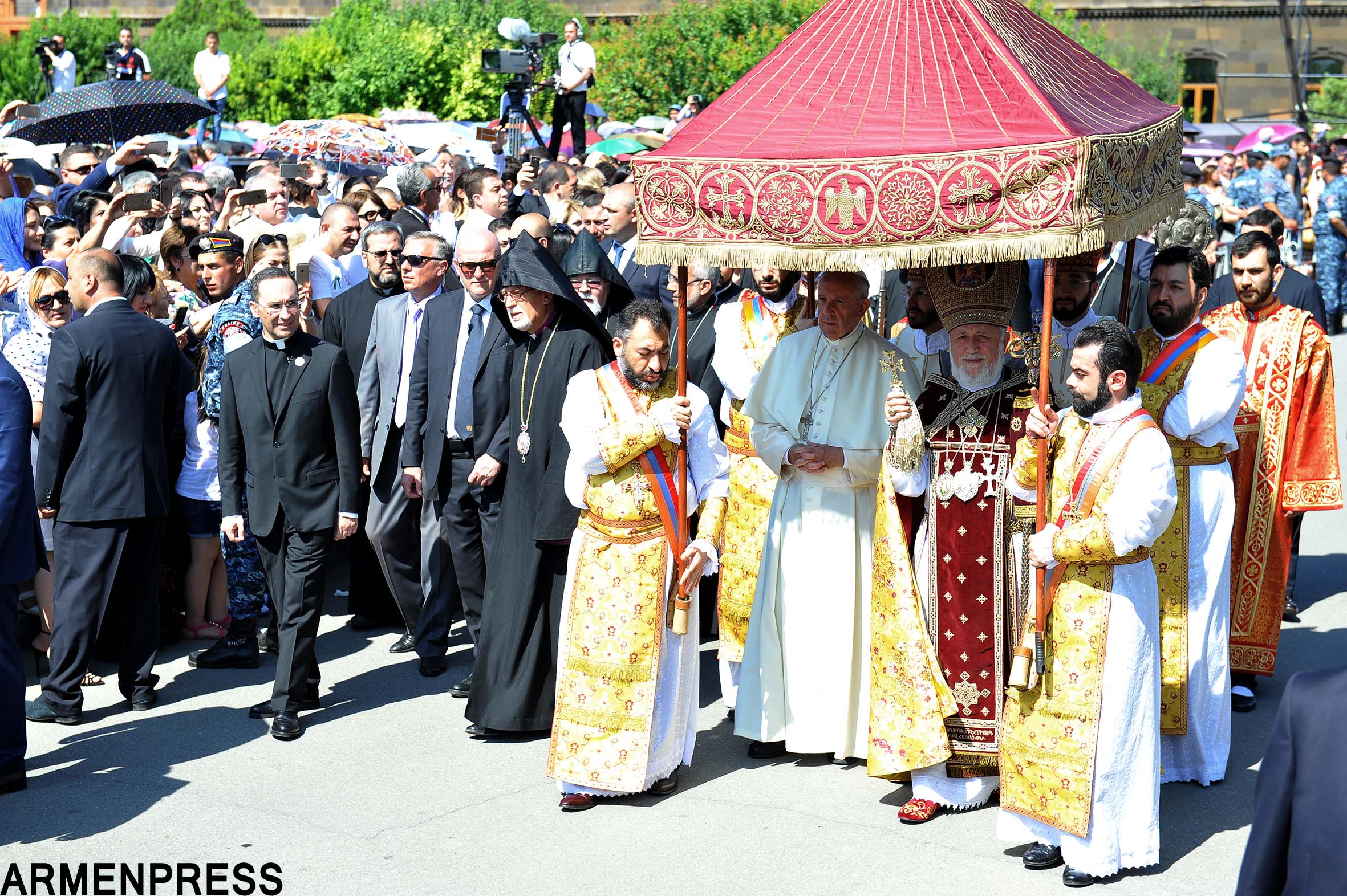 Մայր Աթոռ Սուրբ Էջմիածնում` Սբ. Տրդատի բաց խորանի առջև, այսօր տեղի ունեցավ Ն. Ս.Օ.Տ.Տ. Գարեգին Բ Ամենայն Հայոց Կաթողիկոսի ու Հռոմի Ֆրանցիսկոս Պապի համատեղ Առաջնորդական սուրբ պատարագի մատուցման արարողությունը, ինչից հետո նախատեսվում է հանդիպում Հայոց եկեղեցու պատվիրակությունների հետ, ապա`այցելություն Խոր Վիրապ: