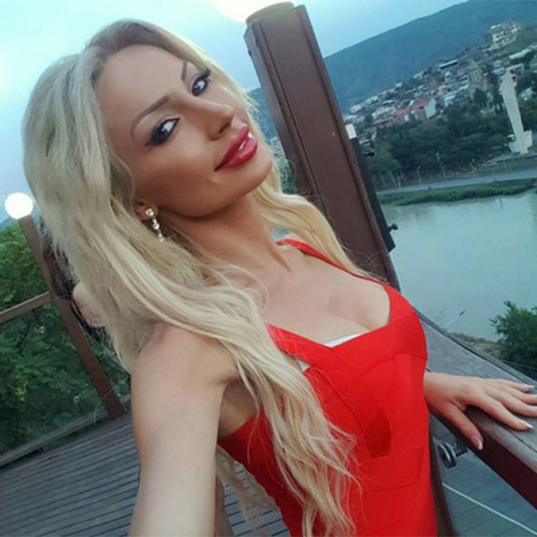 Լուսանկարներում նա կրում է մուգ վարդագույն շապիկ և նույն երանգի կարճ կիսաշրջազգեստ, որոնք ի ցույց են դնում նրա բարեկազմ ոտքերը: Լուսանկարներն արվել են լողավազամնի հարևանությամբ: