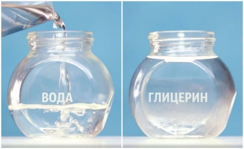 Հավասար չափերով տարրայի մեջ ջուր և գլիցիրին լցրեք