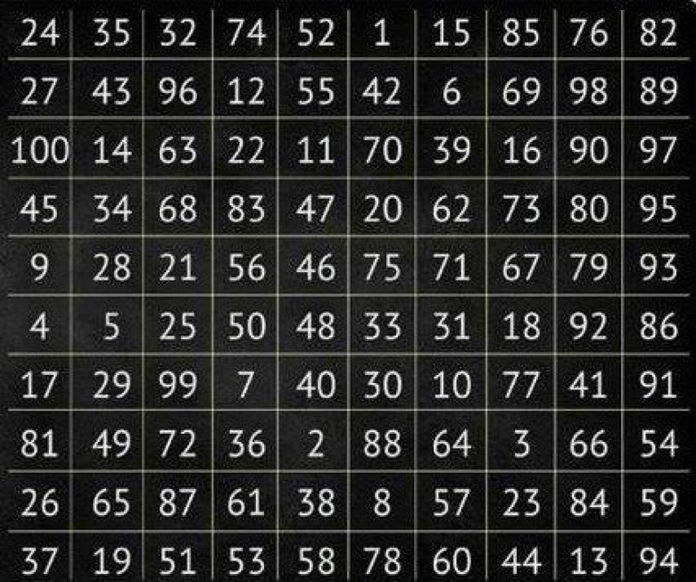 Երազանք պահեք, փակեք ձեր աչքերը, այնուհետև պատահականության սկզբունքով աղյուսակից ընտրեք որևիցե մի թիվ: Որ թիվն ընկնի, կարդացեք համապատասխան տարբերակը: