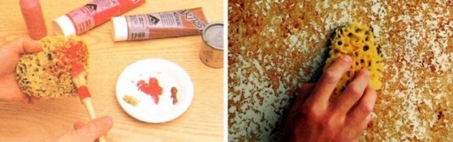 5. Հաջորդ քայլի համար ձեզ հարկավոր է մեծ անցքերով չոր սպունգ։ Սպունգը պատեք ներկով և զգուշությամբ տպեք փուչիկի մակերեսին։ Հատվածներ կլինեն, որոնք կպահանջեն կրկնակի ներկում։
