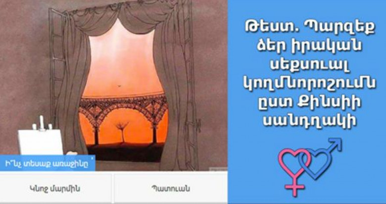 LifestyleԱյս թեստի հիմքում Քինսիի սանդղակն է։ Դուք կարող եք չհրապարակել ձեր արդյունքները, բայց թեստի սխալականությունը մինիմալ է։ Այն մշակելու համար աշխատել են հոգեբաններ։ Արդյունքներն իսկապես կարող են զարմացնել, իսկ դուք ձեր մասին շատ բան կիմանաք: