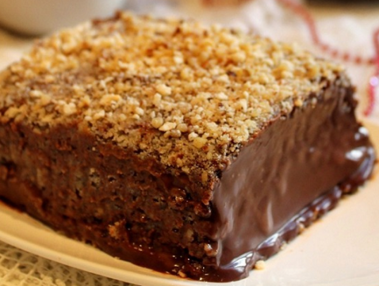 Լցնել շոկոլադի զանգվածը, կրկին մանրացրած ընկույզը, շոկոլադ, վերջում զարդարել մանրացրած ընկույզով։