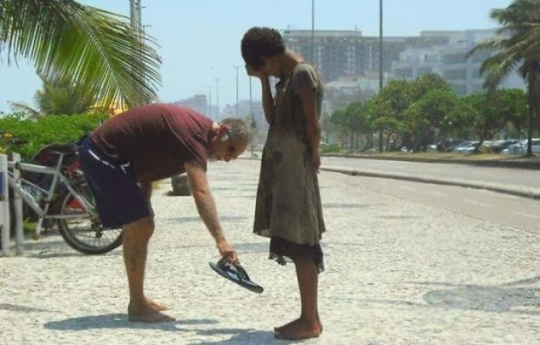 Բրազիլացի տղամարդն իր  հողաթափերը տալիս է ոտաբոբիկ մուրացկանին: