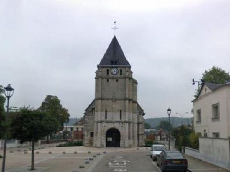 Հուլիսի 26-ին առավոտյան մոտ 9:45-ին երկու անհայտ անձ, զինված դանակներով, Սենտ-էտյեն- դյու-Ռուվրեի եկեղեցում հինգ մարդու են պատանդառել առավոտյան պատարագի ժամանակ՝ հոգեւորականին, եկեղեցու երկու ծառայողների ու երկու հավատացյալների: Ոստիկանությունը կրակ է բացել ու սպանել շենքից դուրս եկած հանցագործներին: Շենքում գտել են սպանված 86-ամյա հոգեւորական Ժակ Ամելի մարմինը, որի կոկորդն էին կտրել: Եվս մեկ տուժածի գտել են ծանր վիճակում: