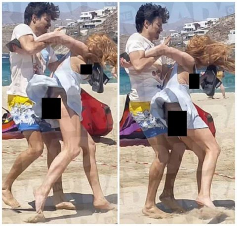 Голливудская актриса и ее жених-россиянин устроили патасовку на греческом пляже.