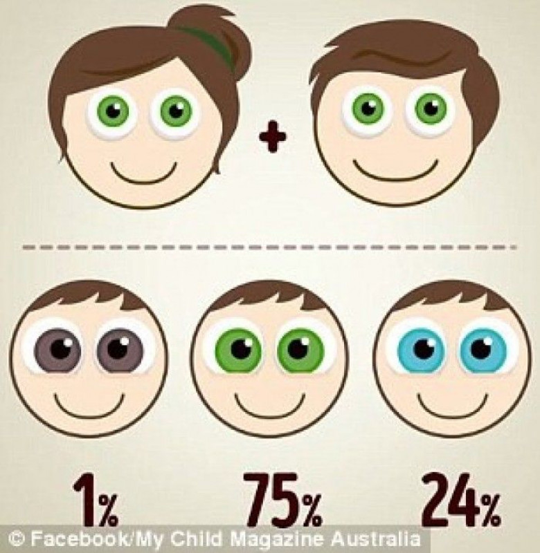 My Child Magazine Australia-ի նոր տեսահոլովակում պատմվում է, թե ինչպիսին է հավանականությունը, որ Ձեր երեխայի աչքերը այս կամ այն գույնի կլինեն: Օրինակ, եթե Դուք կանաչ աչքեր ունեք, իսկ Ձեր զուգընկերը` շագանակագույն, ձեր երեխան 50 տոկոս հավանականությամբ կժառանգի շագանակագույն աչքերը, 38 տոկոս հավանականությամբ` կանաչը եւ 12 տոկոս հավանականությամբ` կապույտը: