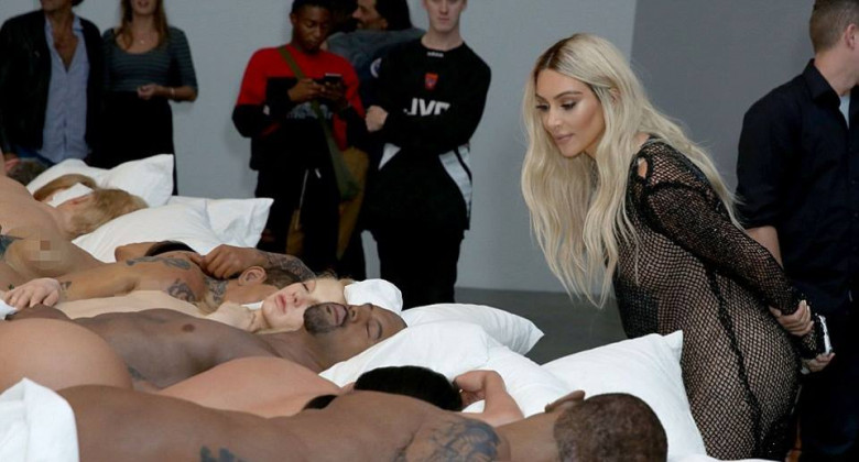 Շիկահեր Քիմ Քարդաշյանը՝ Քանյե Ուեսթի Famous հոլովակի մերկ հերոսների մոմե արձանների ցուցահանդեսին