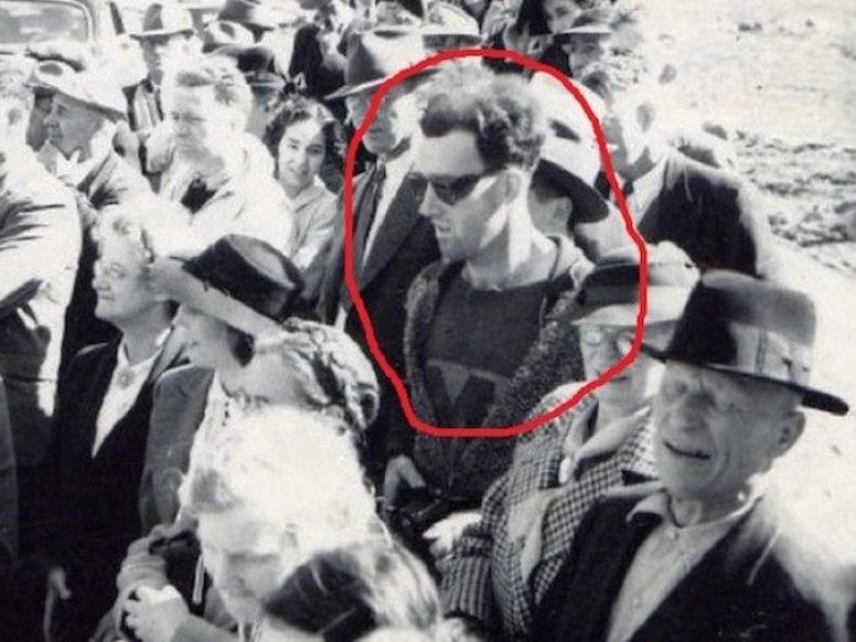 Այս լուսանկարը առրվել է 1941 թվականաին՝ Կանադայում։ Առաջին հայացքից այս նկարի հետ ամեն ինչ կարգին է, սակայն ավելի ուշադիր զննելով կարելի է նկատել մի տղամարդու, ով կրում է մեր ժամանակների մոդային համապատասխանող հագուստ։ Նրա ձեռքին կա մոդերն տեսախցիկ իսկ նրա ակնոցները արտադրվել են լուսանկարի կատարվելում 10 –նյակ տարիներ հետո։