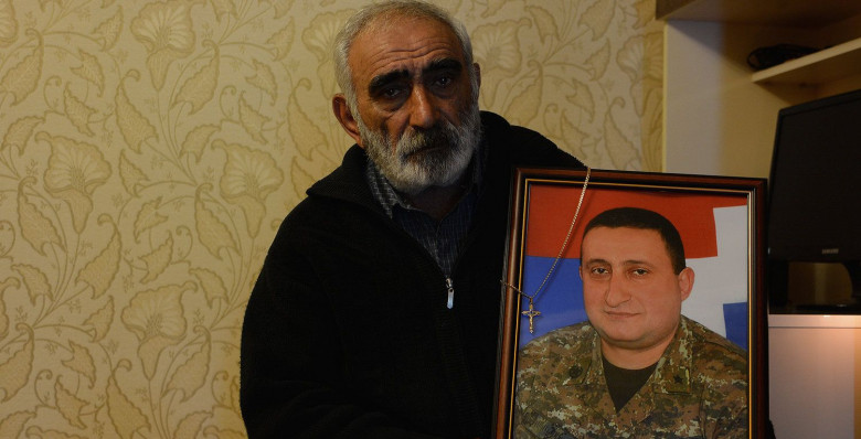 Վլադիմիրը ժամկետային զինծառայող էր, երեք ամսից պիտի զորացրվեր: Մայրը` Նելան, պատմում է, որ երբ որդին զանգում էր դիրքերից, ընտանիքի անդամների որպիսությունը հարցնելուց հետո միշտ խնդրում էր հարազատ Կարվին թաղամասի հարևանների մասին պատմել: Իսկ երբ հաջողվում էր մի քանի օրով արձակուրդ գալ շրջում էր բոլորի տներով ու զրուցում նրանց հետ: Նելան ձեռքով շոյում է Վլադիմիրի նկարի շրջնակը եւ, կարծես, մտովի զրուցում որդու հետ: Տպավորություն է, որ  ծնկներին ոչ թե զոհված որդու նկարն է, այլ կենդանի որդին: