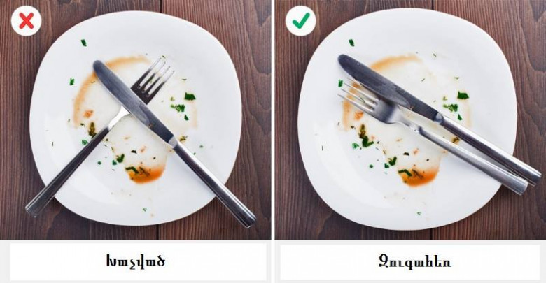 Ինչպես դանակ-պատառաքաղը թողնել ափսեի մեջ՝ ուտելուց հետո