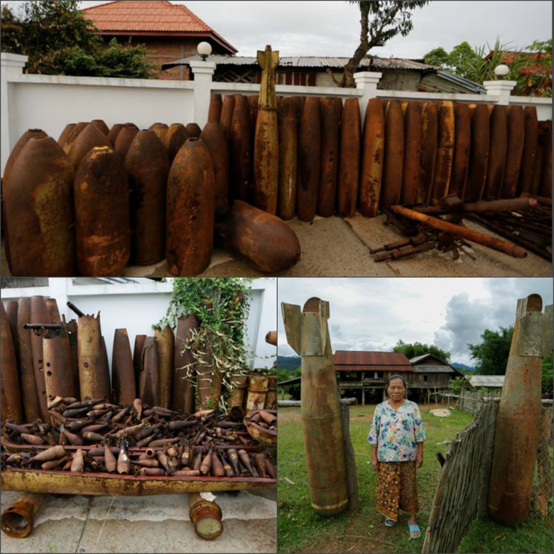 1960-1973 թթ.-ի Լաոսի քաղաքացիական պատերազմի ժամանակ ԱՄՆ-ը վրա ավելի քան 4 միլիարդ ավիառումբ է նետել երկրի տարբեր հատվածներում: Արդեն 40 տարի է անցել այդ դեպքերից, բայց տեղացիներն առ այսօր չպայթած ռումբեր են գտնում: Շատ դեպքերում դրանք ավարտվում են ողբերգությամբ, բայց կան նաև նախաձեռնող մարդիկ, ովքեր դրանք օգտագործում են առօրյա կյանքում. դարպասներ ու տներ են կառուցում, ինչպես նաև սպասքի պարագաներ են պատրաստում այդ մետաղներից.