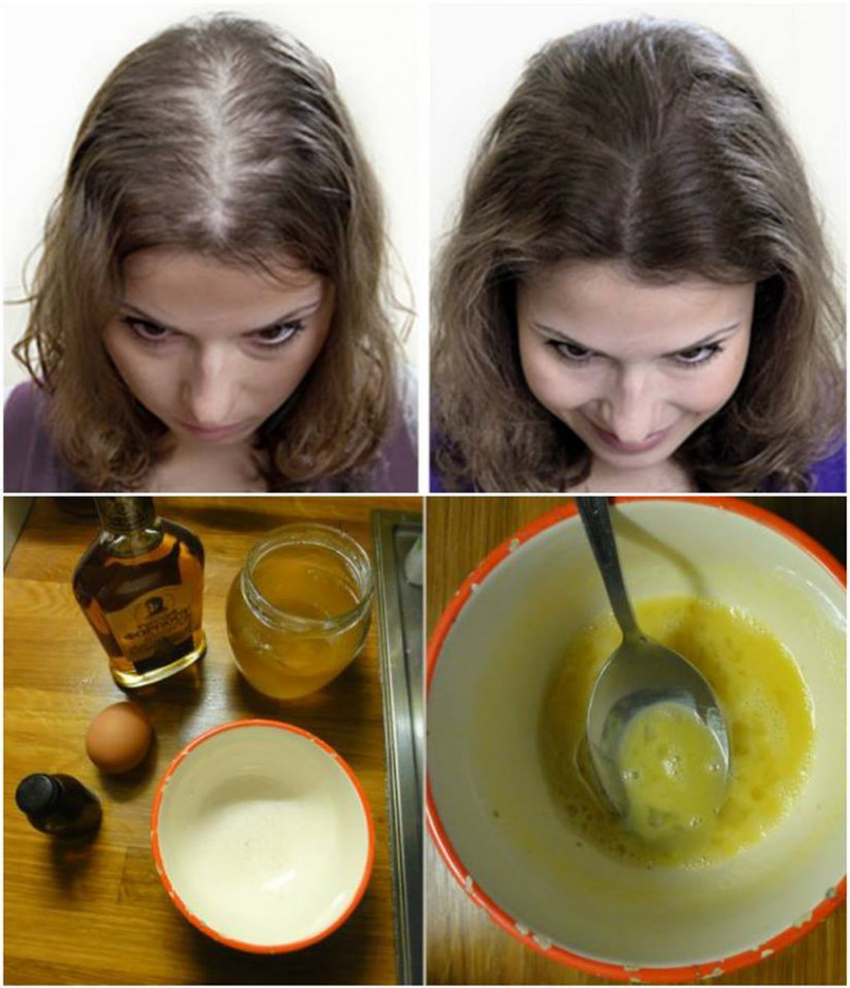 Մեկ ճաշի գդալ մեղրի վրա լցրեք մեկ ճաշի գդալ կոնյակ: Լավ խառնեք և թողեք այդպես երկու ժամ: Ստացված զանգվածին ավելացրեք երկու՝ թույլ հարած ձվի դեղնուց: Խառնեք՝ շարունակելով թեթեվակի հարել: Քսուքը քսեք գլխի մաշկին: Եթե ձեր մազերը չոր են, աշխատեք, որ քսուքը չտարածվի մազերի ողջ երկայնքով՝ ալկոհոլային դիմակները լրացուցիչ չորացնում են մազերը: Պահեք դիմակը քսան րոպե, իսկ հետո լվացեք տաք ջրով: Քսուքը պետք է կիրառել շաբաթական մեկ անգամ: Տևողությունը՝ ելնելով արդյունքից: Սովորաբար 45 պրոցեդուրան բավական է: Արդյունքը. Մազարմատներն ամրանում են: Այս միջոցը խթանում է մազերի աճը: