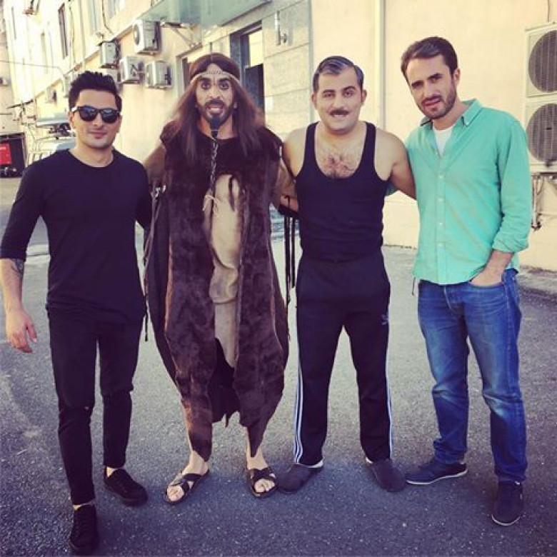Լուսանկարում երեք տարբեր նախագծերից հերոսներ են` Գրիգոր Դանիելյանն ու Գոռ Հակոբյանը` «Ֆուլ հաուսից», Ռաֆայել Երանոսյանը` «Քարե դարդից» և Սոս Ջանիբեկյանը` «Դոմինոյոից»:
