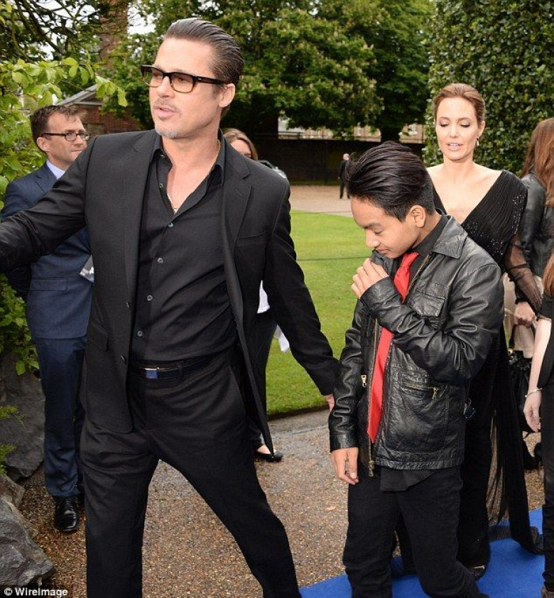 Family day out: Brad is seen with Pax Thien, Shiloh Nouvel and Maddox at the premiere of Unbroken at TCL Chinese Theater IMAX on December 15, 2014 in Hollywood