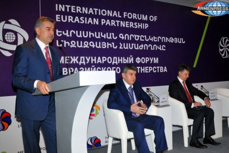 Անդրադառնալով Եվրասիական գործընկերության միջազգային համաժողովին՝ Կարեն Կարապետյանը նրա մասնակիցներին մաղթել է արգասաբեր աշխատանք: Նա նշեց է, որ ընդհանրությունները շատ են և ուրախությամբ նկատել, որ համաժողովի մասնակիցներն ունեն գործնական ամուր հարաբերություններ: Վարչապետը ներկաներին մաղթեց հաջողություններ և արդյունավետ աշխատանք: