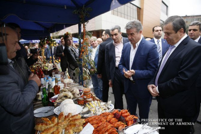 Վարչապետ Կարապետյանը շրջել է ցուցահանդեսի տաղավարներով, ծանոթացել ներկայացված ապրանքատեսականուն, ընկերությունների զարգացման ծրագրերին: Կառավարության ղեկավարը հետաքրքվել է նրանց խնդիրներով, որոնք խոչընդոտում են արտադրական ծավալների ավելացմանը, արտահանման աճին և այլն: Կարեն Կարապետյանը հորդորել է ընկերությունների ներկայացուցիչներին պատրաստել հստակ առաջարկությունների փաթեթ և այն ներկայացնել կառավարություն: Վարչապետը կարևորել է արտադրական գործընթացում ժամանակակից տեխնոլոգիաների կիրառումը՝ ավելացնելով, որ կառավարությունը պա տրաստ է այդ ուղղությամբ օժանդակություն ցուցաբերել տնտեսվարողներին: «Գյուղնախարարի հետ քննարկում և այժմ բանակցում ենք, որպեսզի մասնավորի հետ ստեղծենք մի ընկերություն, որը կզբաղվի հայկական գյուղմթերքների, վերամշակված մթերքների շուկաների որոնմամբ: Բայց լինելու են շատ հստակ ձևակերպված որակական ցուցանիշներ՝ ինչին պետք է բավարարեն, որ իրենք կարողանան հանգիստ գումար ներդնել և սկսեն զբաղվեն շուկայի որոնմամբ»,- նշել է կառավարության ղեկավարը:
