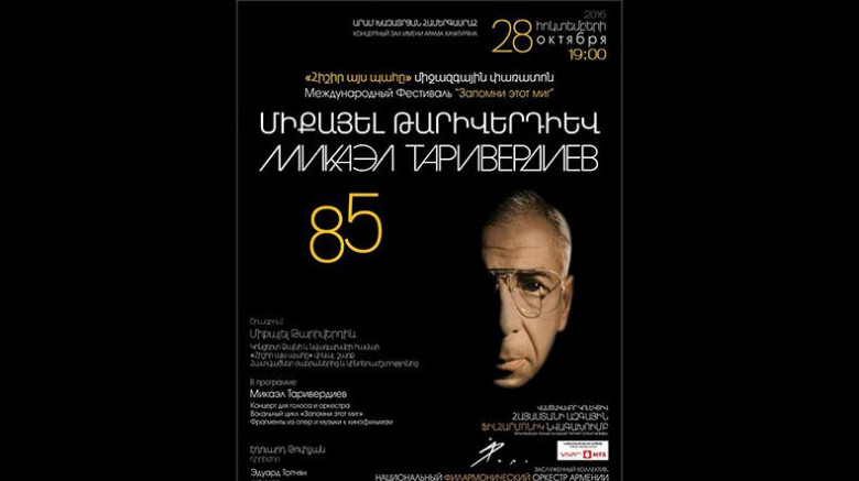 ՄշակույթԱրամ Խաչատրյան համերգասրահում հոկտեմբերի 28-ին կայանալու է համերգ՝ նվիրված Միքայել Թարիվերդիևի 85-ամյակին: Համերգին ելույթ է ունենալու Հայաստանի ազգային ֆիլհարմոնիկ նվագախումբը: