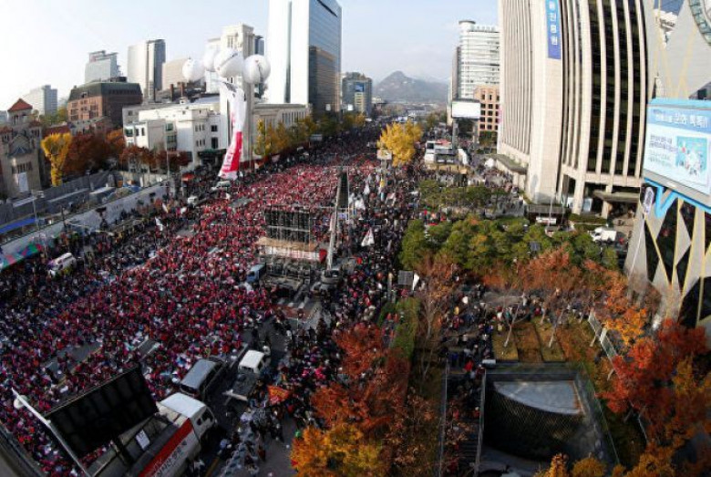 Հարավային Կորեայի մայրաքաղաքի կենտրոնում հավաքված բազմությունը պահանջում է երկրի ղեկավարի հրաժարականը: Երկրի նախագահի վարկանիշն իջել է մինչև 5 տոկոս, իսկ նրա վարած քաղաքականությունը չի ընդունում բնակչության 90 տոկոսը: