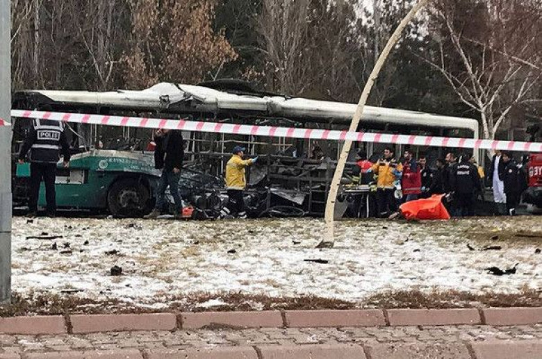 Պայթյունի հետևանքով, որը որոտացել է շաբաթ առավոտյան Էրջիես համալսարանի մոտակայքում, առնվազն 14 մարդ է զոհվել: Մահապարտ ահաբեկիչն ականապատ մեքենայով բախվել է ավտոբուսին, որը ազատման թերթիկ ստացած զինծառայողների էր տեղափոխում: