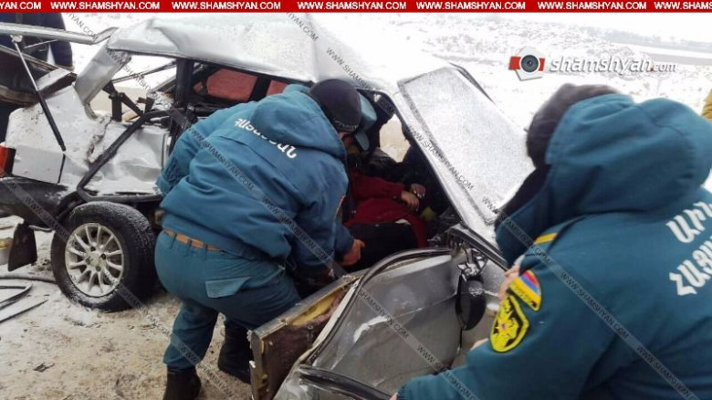Ողբերգական ավտովթար Արմավիրի մարզում. բախվել են Mitsubishi-ն ու «09»-ը. մահացածի դին մեծ դժվարությամբ ավտոմեքենայից դուրս են բերել փրկարարները