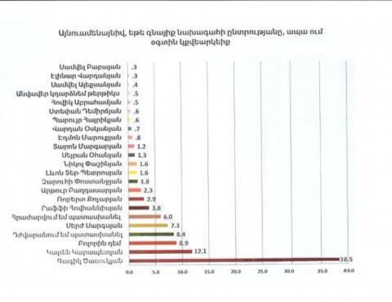 Հեղինակավոր սոցոլոգիական կենտրոններից մեկի կողմից իրականացված հարցումների արդյունքներն ավելի քան խոսուն են և՝ այդ առումով, կարծեք թե արդեն պարզ է դառնում, թե ՀՀ քաղաքացիները որ ուժերին և ռեյտինգային որ թեկնածուներին է համակրում, ովքեր են համարվում առաջիկա ընտրությունների առաջատարը: