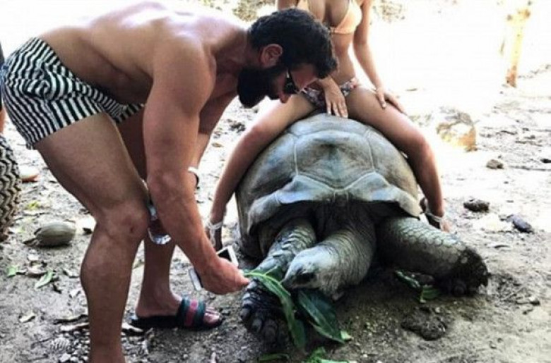 Ինչպես նշում է The Daily Mail-ը, լուսանկարում պատկերված են Բիլզերյանն ու նրա սեքսուալ ընկերուհին, որը նստել է վերացման վտանգի տակ գտնվող 100-ամյա գալապագոսյան կրիայի պատյանին: