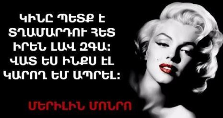 1. Կինը պետք է տղամարդու հետ իրեն լավ զգա: Վատ ես ինքս էլ կարող եմ ապրել:  Մերիլին Մոնրո