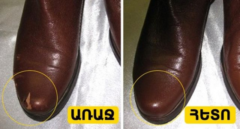 1. Կաշվե կոշիկի վրայի խորը քերծվածքը կարելի է վերացնել մեղրամոմի կամ պարաֆինի միջոցով: