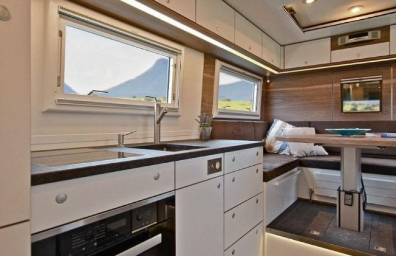 Ավստրիական Action Mobil ընկերությունը անիվների վրա իսկական ամրոց է նախագծել: 530 ձիաուժ հզորությամբ և 6 անվադողով բեռնատարում կա հնարավոր ամեն բան՝ հյուրասենյակ, խոհանոց, լոգարան, արևային մարտկոցներ, 1000 լիտր ջրի համար նախատեսված բաք, լվացքի մեքենա, չորանոց, արբանյակային ալեհավաք և անգամ մոտոցիկլետի տեղափոխման հարմարանք: