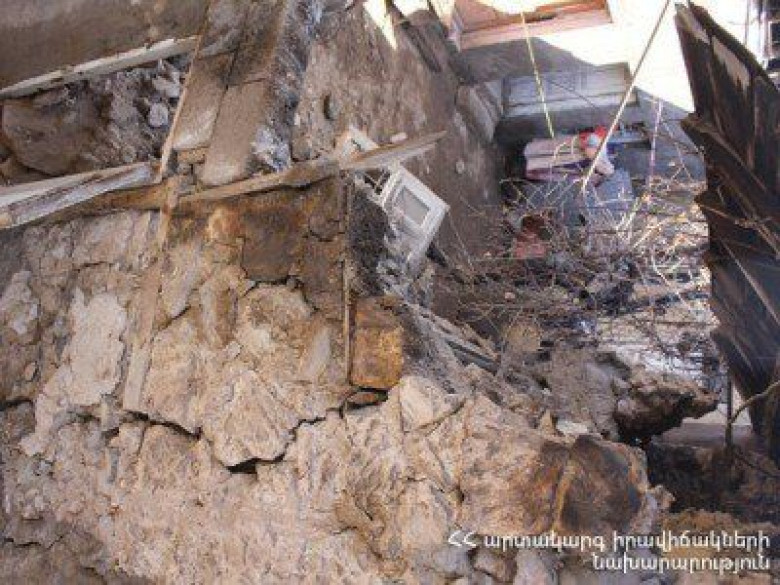 Պարզվել է, որ մասնակի փլուզվել է տան արտաքին պատը (մոտ 25 քմ), առկա է մնացած հատվածի փլուզման վտանգ (պատի վրայով անցնում է գազատար խողովակ), տան պատերին հայտնաբերվել են ճաքեր` մոտ 2 մ երկարությամբ եւ մոտ 1-2 սմ բացվածքով (7 հատ):