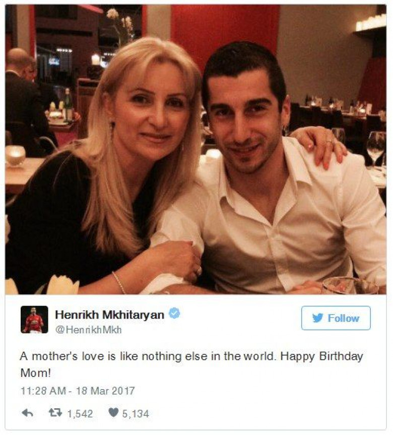 Հայաստանի ազգային հավաքականի և անգլիական «Մանչեսթեր Յունայթեդի» կիսապաշտպան Հենրիխ Մխիթարյանը Ֆեյսբուքյան իր էջում հրապարակել է մոր` Մարինա Թաշչյանի հետ համատեղ լուսանկար և գրառումով շնորհավորել նրա ծննդյան տարեդարձը: